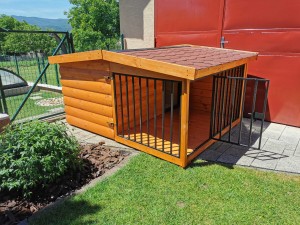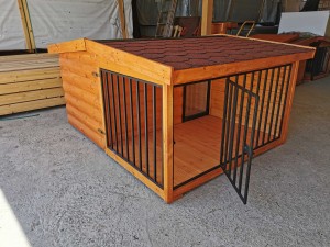 A modell egy teljes értékű, hőszigetelt kutyaházat kombinál egy fedett, zárható fémrácsos terasszal, amely alkalmas pihenésre vagy rövid idejű elkülönítésre.
