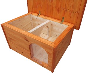 Az oldalsó bejárat védelmet nyújt az időjárás viszontagságai ellen, és lehetőséget ad arra is, hogy kutyusod beljebb húzódjon. A bejáratra AJÁNDÉK hőfüggönyt adunk, amely segít bent tartani a meleget a hideg hónapokban. Nyitható lapos teteje egyszerű hozzáférést biztosít a takarításhoz, almozáshoz vagy elléshez.