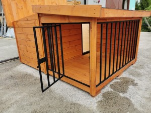 A Rex modell egy teljes értékű, hőszigetelt kutyaházat kombinál egy fedett, zárható fémrácsos terasszal, amely kiválóan alkalmas pihenésre vagy rövid idejű elkülönítésre.